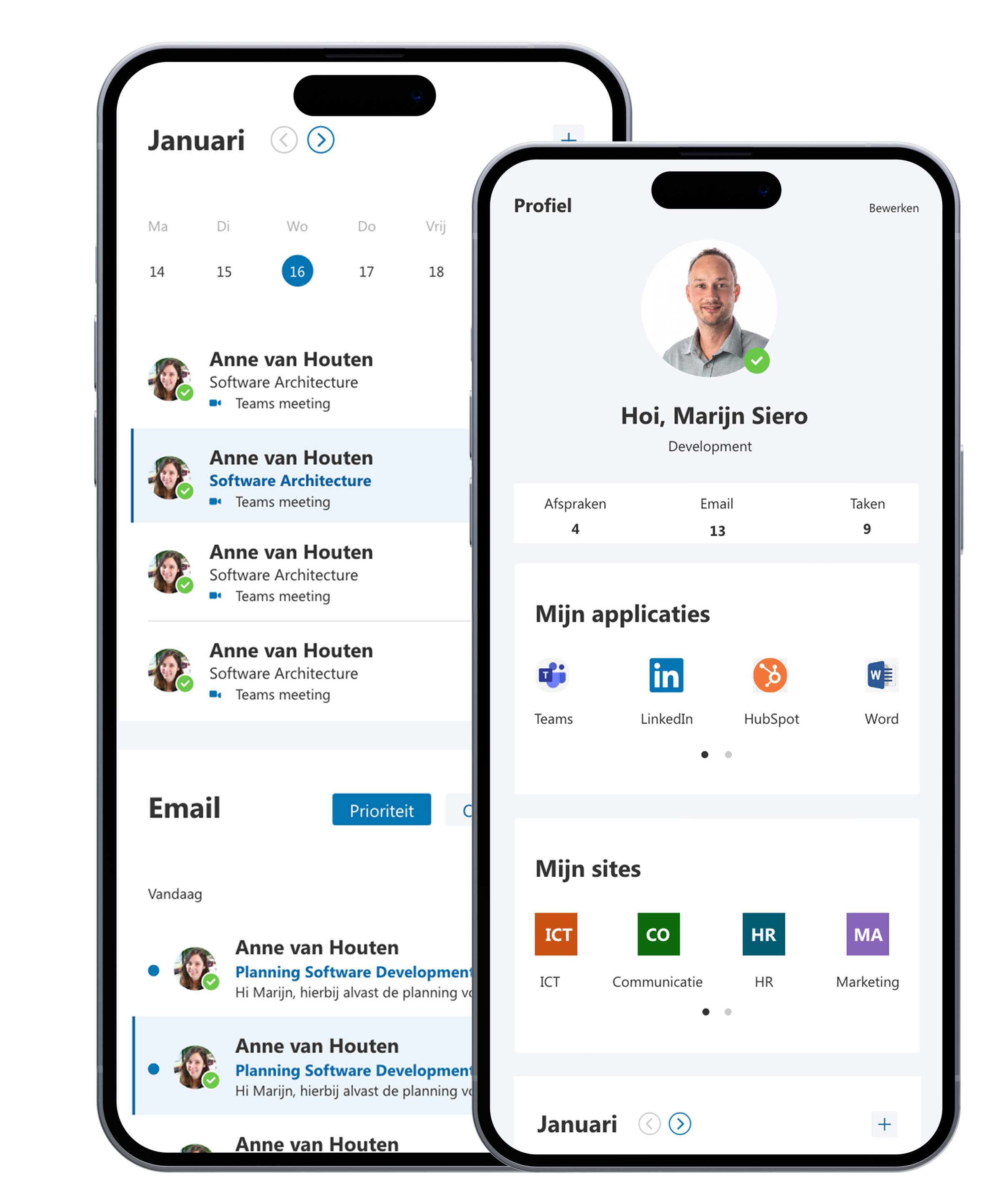 Zo krijgen jouw medewerkers snel inzicht in de beschikbaarheid en status van hun collega’s. Blijven ze op de hoogte van persoonlijke gebeurtenissen zoals verjaardagen af jubilea. En raken ze met elkaar in gesprek over de laatste bedrijfsnieuwtjes. Allemaal ter stimulering van de verbondenheid onderling. En uiteindelijk leveren verbonden, betrokken medewerkers betere prestaties op voor jouw organisatie.
